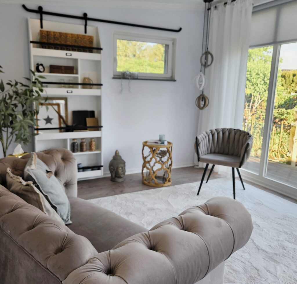 Willkommen in meiner Praxis für Psychotherapie (nach dem HeilprG) Inmitten einer ruhigen, naturnahen Umgebung biete ich dir einen geschützten Raum, in dem du zur Ruhe kommen, dich zurückziehen und neue Kraft schöpfen kannst. Die Praxis liegt eingebettet in die Stille der Natur – ein Ort, der dazu einlädt, loszulassen, anzukommen und sich selbst zu begegnen. Ein warmes, vertrauensvolles Ambiente schafft die Grundlage für eine heilsame therapeutische Beziehung. Hier stehst du mit deinen Anliegen, Bedürfnissen und Zielen im Mittelpunkt. In einer Atmosphäre von Achtsamkeit und Respekt begleite ich dich einfühlsam auf deinem persönlichen Weg.